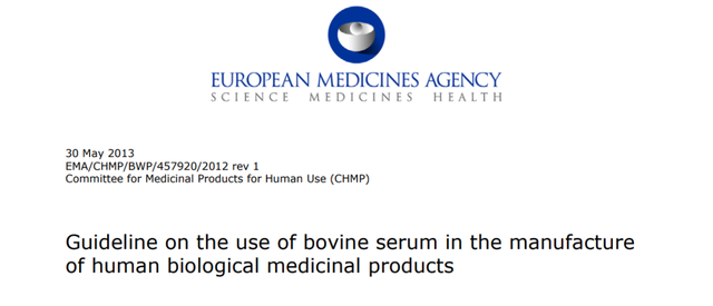 2013年12月1日,歐洲醫藥管理局(EMA)關于牛血清用于生物制品生產的指南正式進入實施階段。